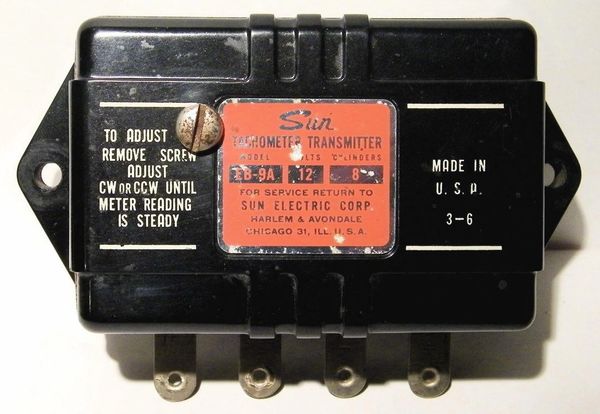 The Sun EB Series transmitters are battery operated transmitters that are designed to produce an average current through the tachometer that varies with the RPM of the engine. The EB-9A is the transmitter that is designed for use with an 8 cylinder engine.