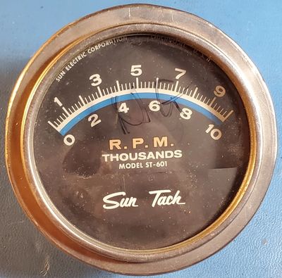 The Sun Tach is an electronic tachometer that does not need a transmitter. It reads the ignition signal from the negative side of the coil and displays the engine RPM on an ammeter calibrated in RPM. The electronics are packaged inside of the tachometer case.