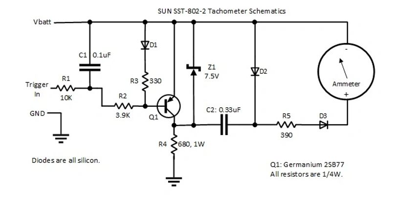 Here are the schematics of the internal electronics of the SST-802-2 tachometer: