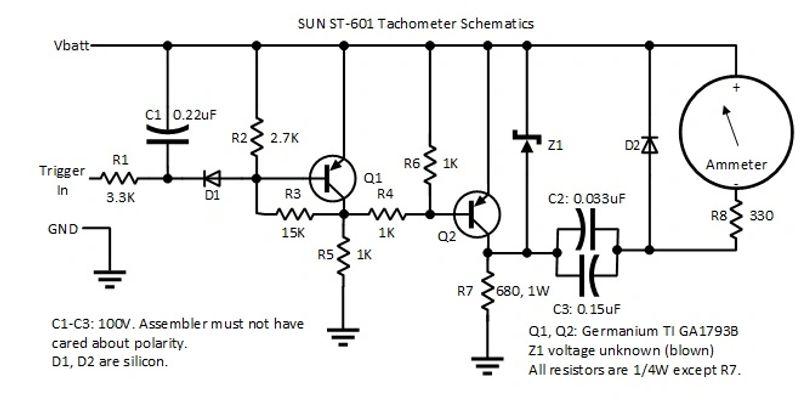 Here are the schematics of the internal electronics of the ST-601 tachometer: