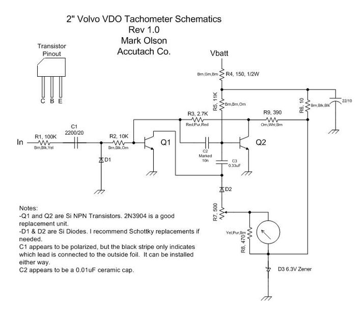 Some Volvo cars of the early 70s came with British Smiths Tachometers and others came with optional tachometers made by VDO of Germany. AccuTach has had the opportunity to reverse engineer these tachometers and to develop tools and information for people with vintage VDO tachometers.